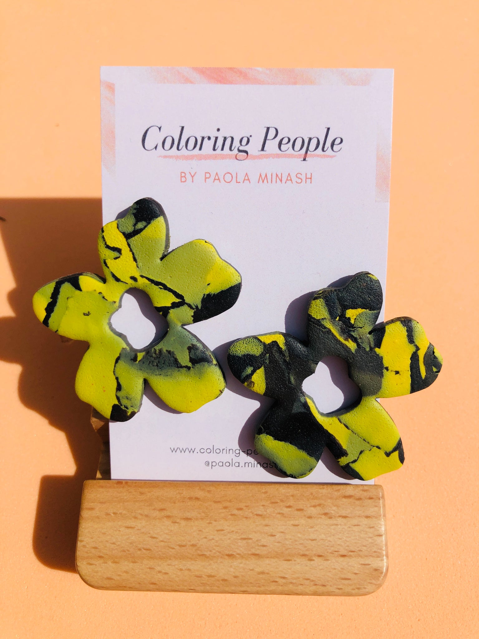 Pendientes hechos a mano con arcilla polimérica y otros materiales. Todos los pendientes de la colección son únicos y no se realizan en serie.